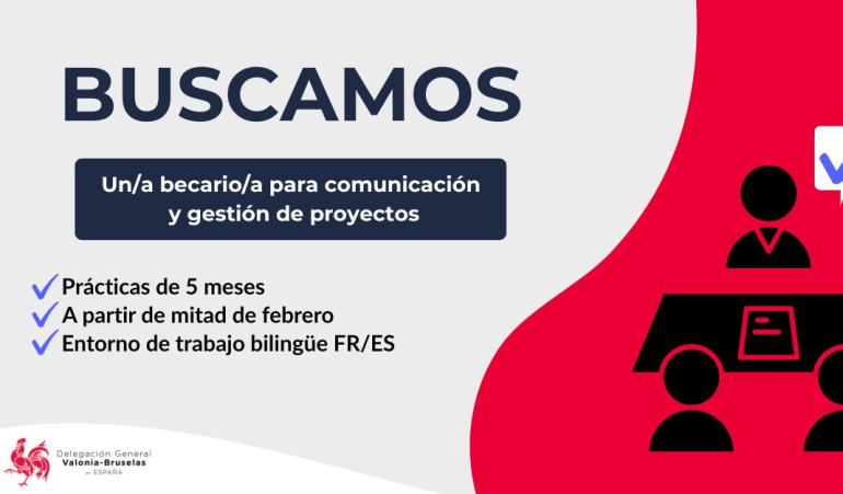 Trabajarás en un equipo joven e internacional, dirigido por Maxime Couvreur, delegado general, y compuesto por cinco personas, entre las que se encuentran una asesora científica y académica, una responsable de promoción cultural y patrimonial, una responsable de la Francofonía y del sector editorial, una responsable de comunicación y una responsable de administración, recursos humanos y contabilidad.