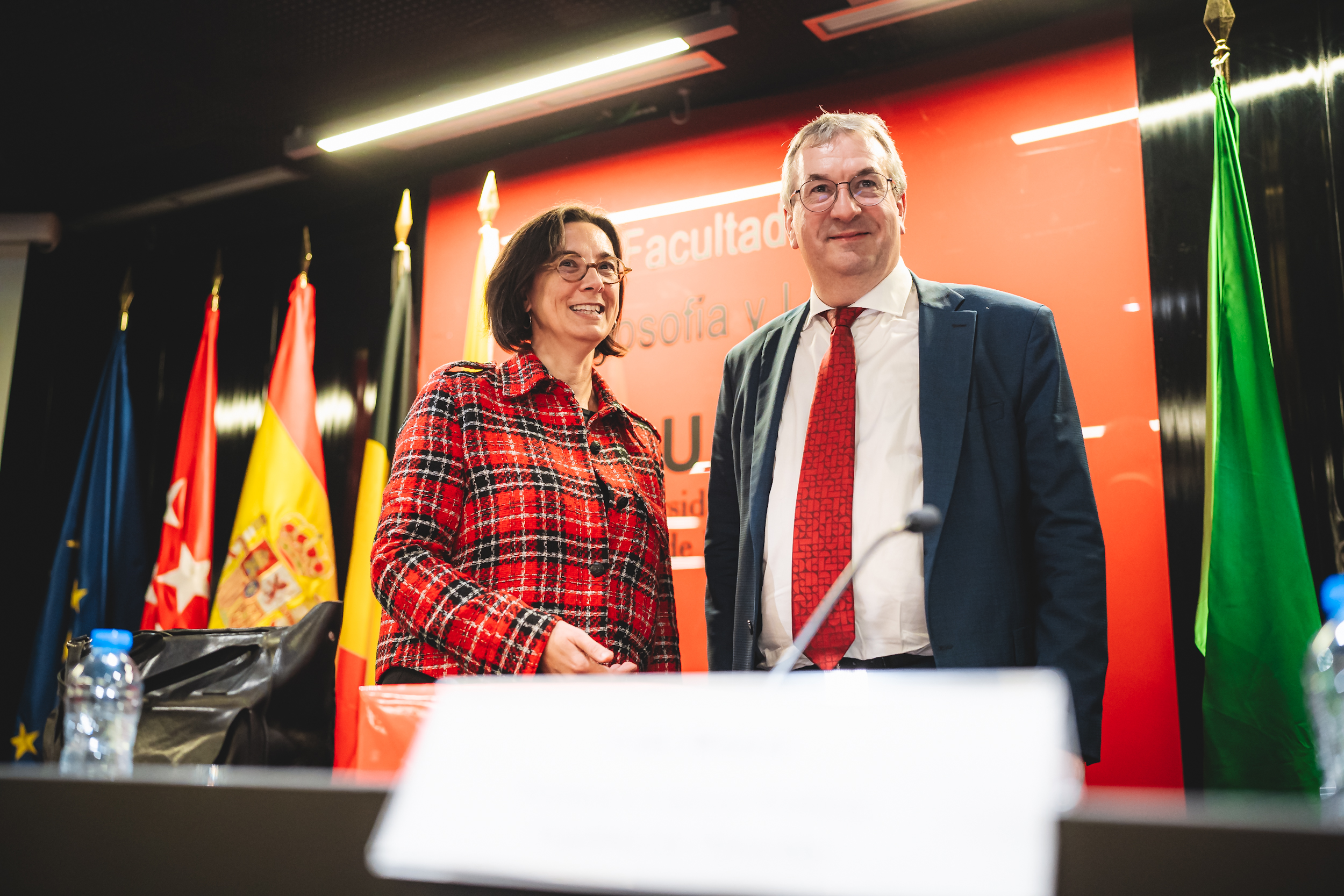Ensuite, le Ministre-Président a donné une conférence intitulée "L'avenir de l'Europe - La Présidence belge du Conseil de l'Union européenne" à l'Université Autonome de Madrid. Cette conférence a été suivie d’un débat avec la vice-rectrice à l'internationalisation, Irene Martín, la doyenne de la faculté de philosophie et de lettres, Patricia Martínez, et du professeur de sciences politiques, Luis Bouza. Cette intervention a permis de sensibiliser les étudiants au fonctionnement du trio de présidence et au fonctionnement institutionnel de la Belgique.