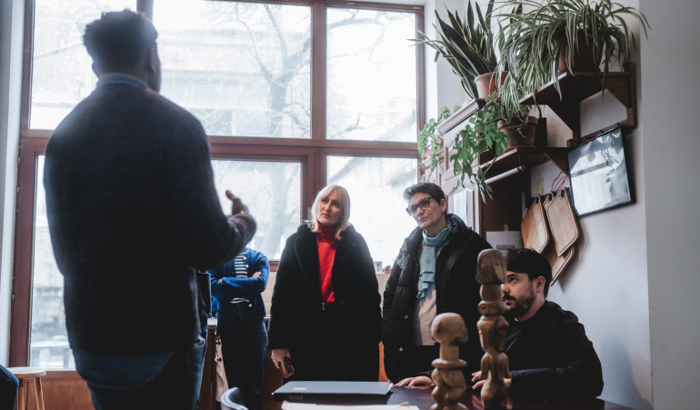 Nous avons eu le plaisir d’accueillir en Fédération Wallonie-Bruxelles Nuria Enguita, Directrice artistique du MAC/CBB – Musée d’Art Contemporain et d’Architecture de Lisbonne, Namalimba Coelho et Camila Maissune, respectivement Directrice de la Communication et Assistante conservatrice du MAAT – Museum of Art, Architecture and Technology de Lisbonne, ainsi que Carles de Ángel Sauri, commissaire indépendant, et Rafael Barer, fondateur de l’espace d’art Pols à Valence.